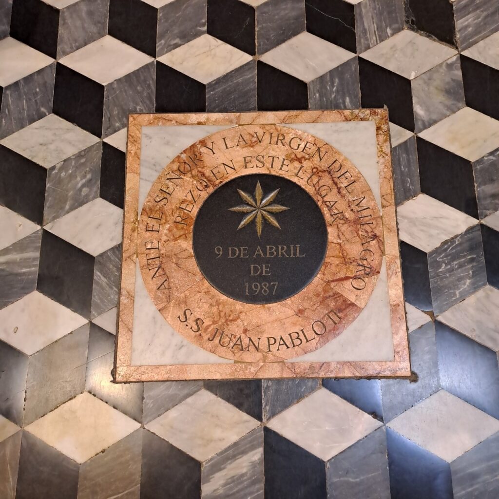 El Legado Papal: Delante del altar mayor, un mosaico en el suelo marca el lugar exacto donde el Papa Juan Pablo II se arrodilló en 1987. Las imágenes fueron entronizadas especialmente para su visita.