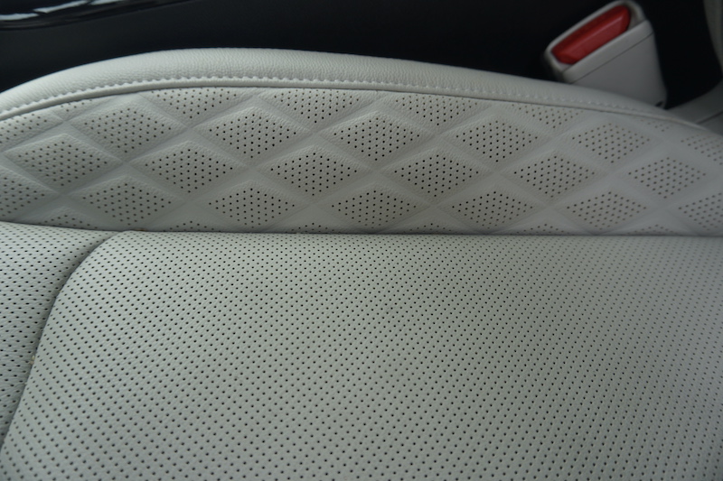 Elegancia : Un elemento que le aporta elegancia son los detalles cromados y los asientos forrados de piel vegana perforada, tipo capitán con el beneficio de apoyo lumbar y ventilación.