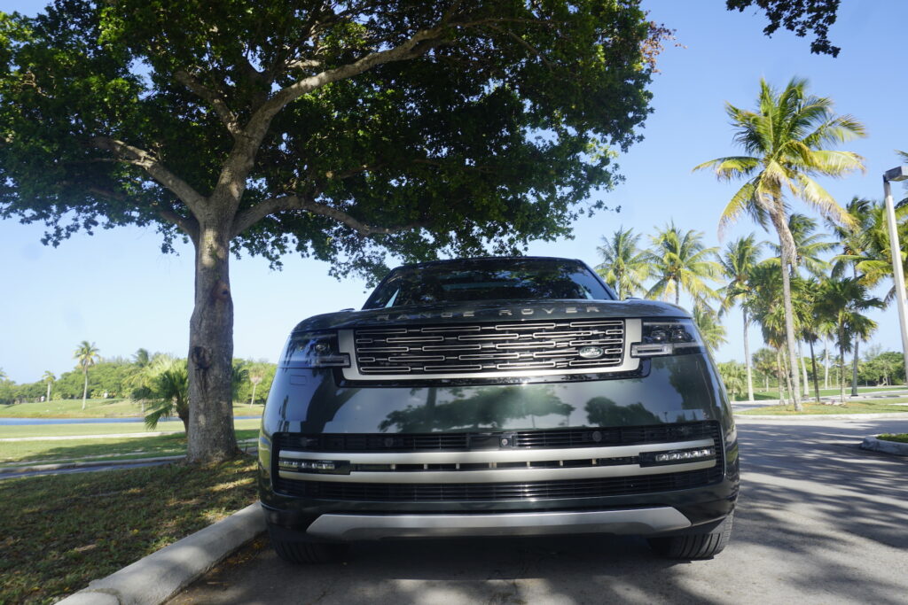 Conducimos un Range Rover, color verde Belgravia, que lleva el nombre del famoso distrito de Londres. Fue un gusto fotografiarlo en todos sus ángulos. Range Rover retoma el color verde, que sido un clásico en la marca y fue usado en los primeros autos.